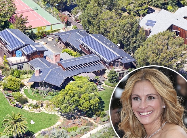 4. ჯულია რობერტსის სახლი ჰავაიზე - ჯულიამ შეიძინა ოკეანესთან ორი სახლი და მათი კომბინირებით ნამდვილი სასახლე შექმნა. მსახიობი აქტიური ბუნებისდამცველია და სახლის დიზინიც გარემოსდაცვის პრინციპებითაა შექმნილი. სახლი ეკო სახურავითაა დახურული. ჯულიას სასახლეს დიდი ეზო აქვს, სადაც ჩოგბურთის სათამაშო მოედანიცაა განთავსებული.