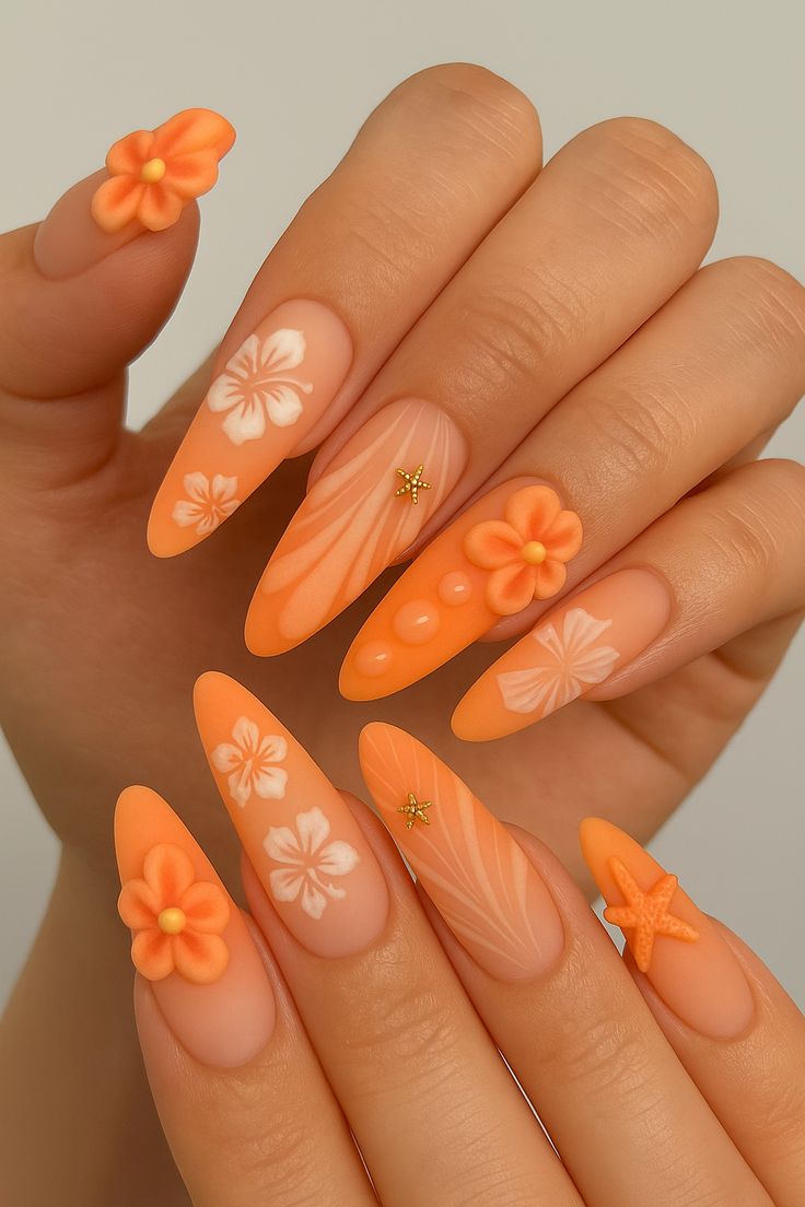 ნარინჯისფერი ფრჩხილები 3D დიზაინით