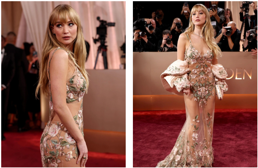 ჯენიფერმა ყველა გააოცა Givenchy-ს გამჭვირვალე კაბით, რომელსაც მხოლოდ ნაზი ყვავილების ქარგვა ფარავდა. ეს იყო ერთდროულად ჰაეროვანიც და ძალიან სექსუალურიც.