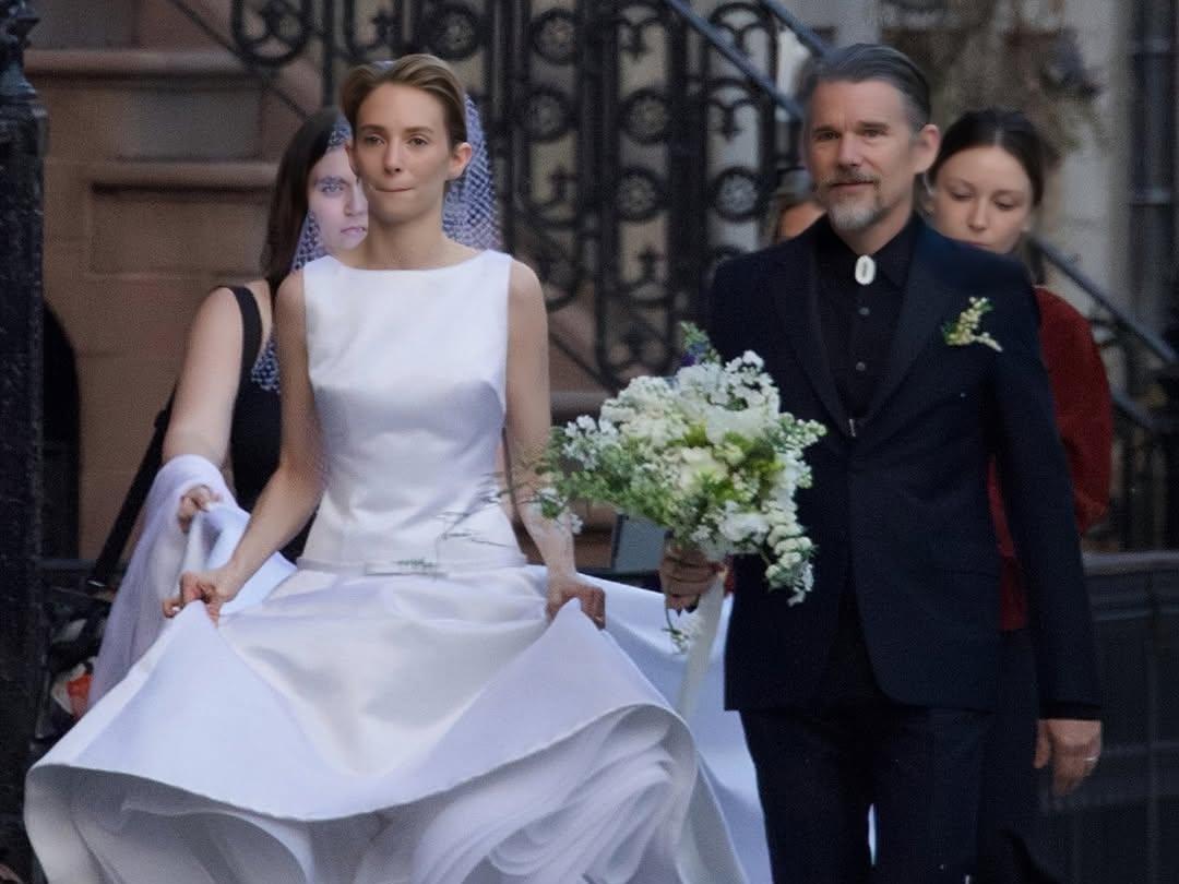 ქორწილის ყველაზე ემოციური მომენტი 55 წლის ეთან ჰოუკის გამოჩენა იყო. მსახიობი შავ კოსტიუმში გამოწყობილი, ხელში თეთრი ყვავილების თაიგულით, შვილს საკურთხევლისკენ მიაცილებდა.