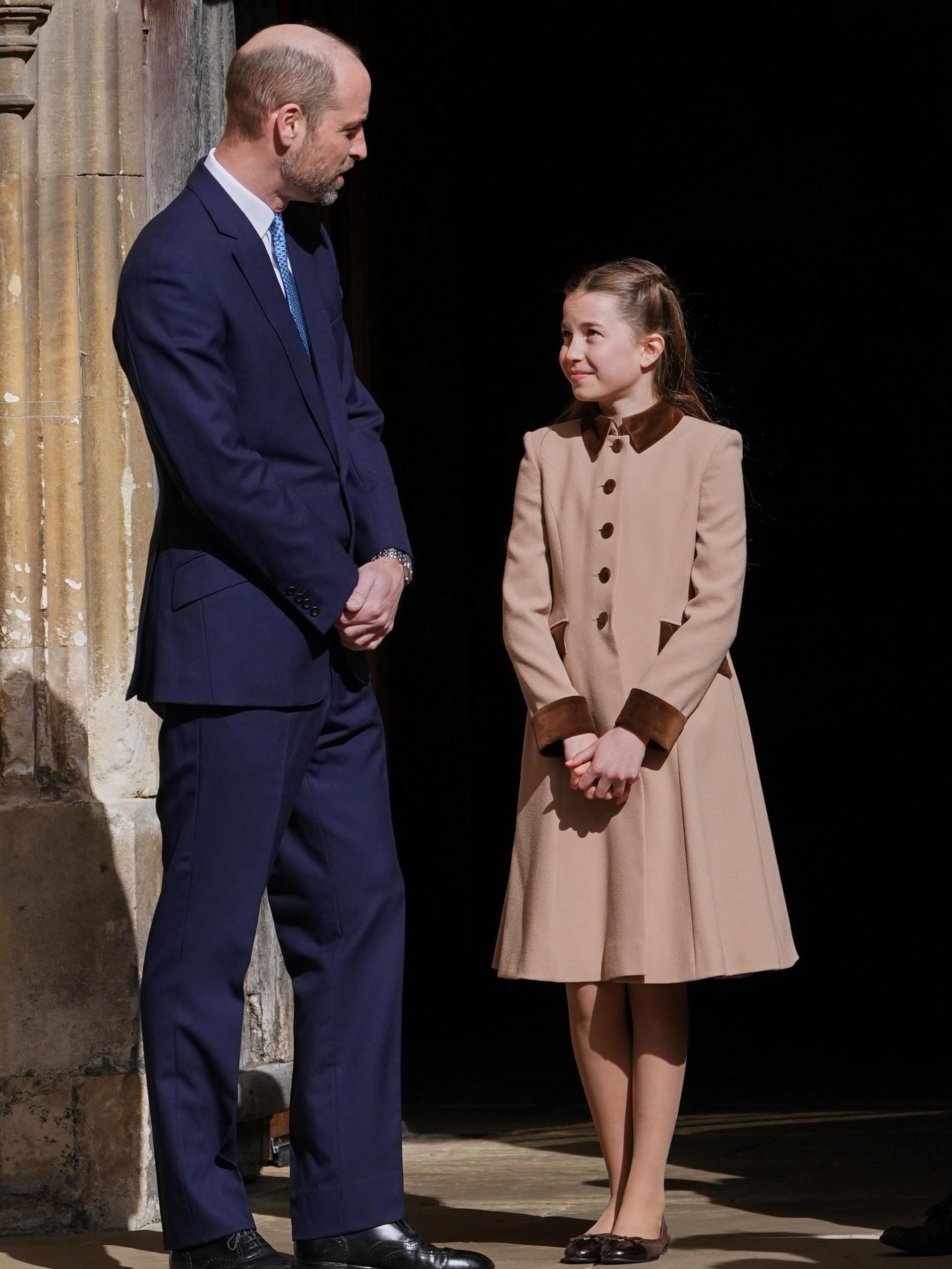 ყველაზე მეტად პრინცისა და პრინცესას გამოჩენას ელოდნენ, რომლებმაც ბოლო ორი წელი აღდგომის მსახურება გამოტოვეს. ქეითი, როგორც ყოველთვის, ელეგანტურობის ეტალონი იყო. მას Self-Portrait-ის კრემისფერი კლასიკური კოსტიუმი და ტონალობაში შეხამებული ქუდი ეხურა. იმიჯი დაასრულა DeMellier-ის საყვარელი მინი-ჩანთით და ბეჟი მაღალქუსლიანი ფეხსაცმლით.